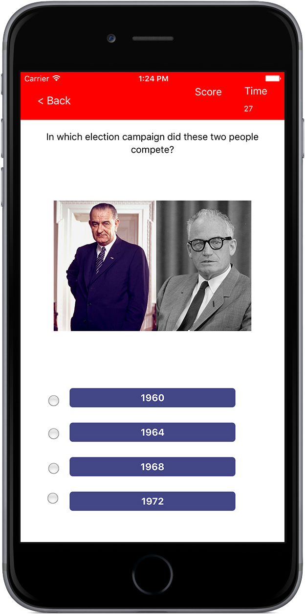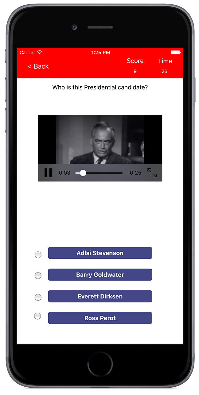 Test your knowledge of American Presidential elections with hundreds of questions at different levels. Test photos and videos make this an engaging game. You can even play on behalf of your favorite candidate in the 2016 race. Accumulate 270 and you candidate has enough points to make it the White House. Questions range from easy questions like who ran in what election, to difficult questions about events that took place at party conventions. Test you knowledge and have some fun while doing so..